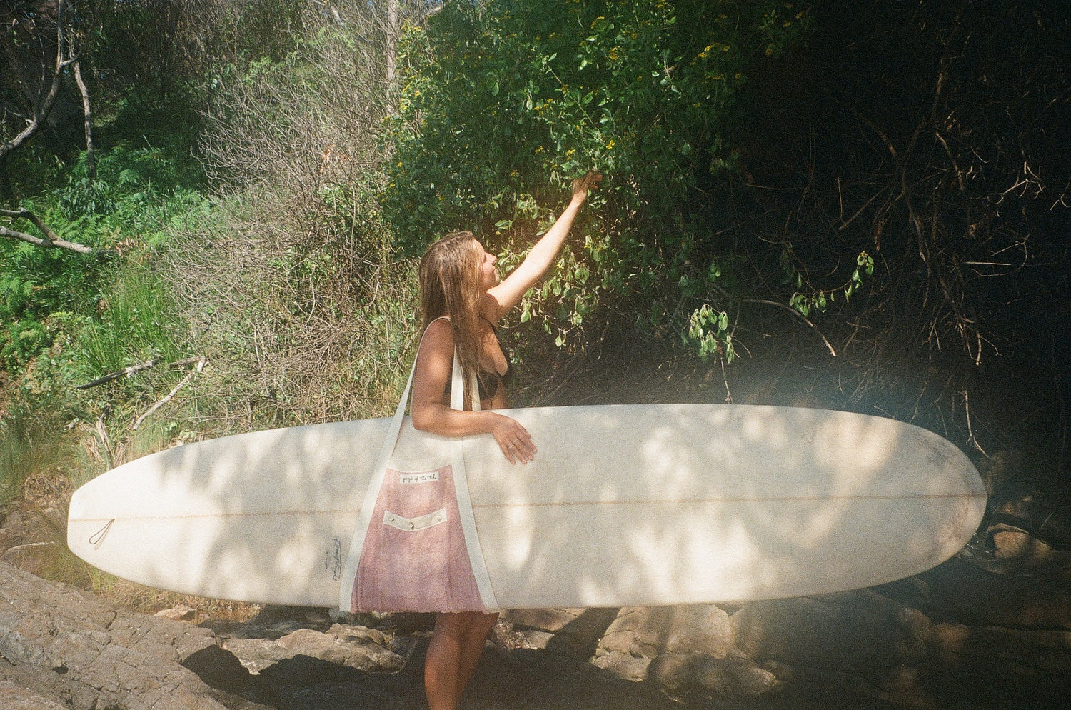 We try to add pockets to all our designs for all your surf & beach essentials. We hand draw our hang tags, collect sea shells & thrift as many of the materials as possible -