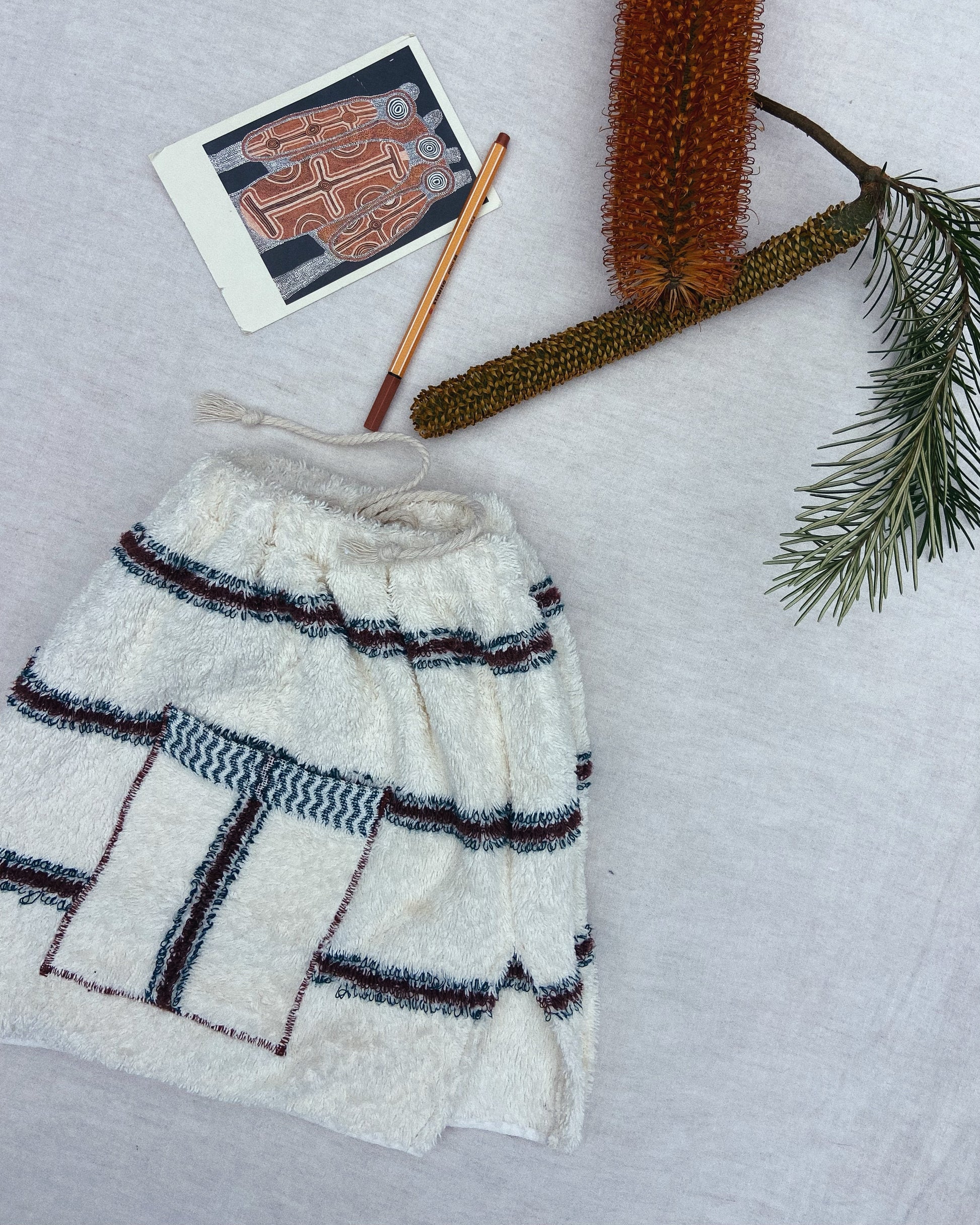 Hand made out of a soft vintage stripe towel, finished off with a little pocket, tie details and our people of the tide logo